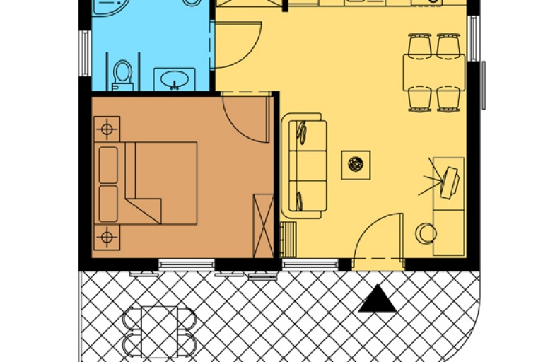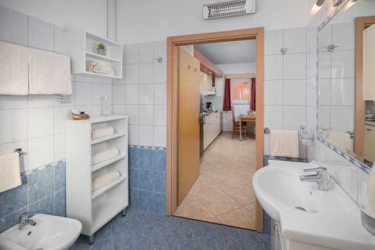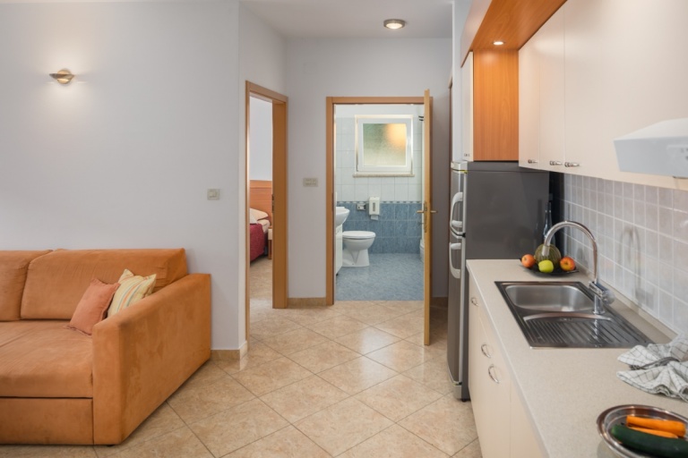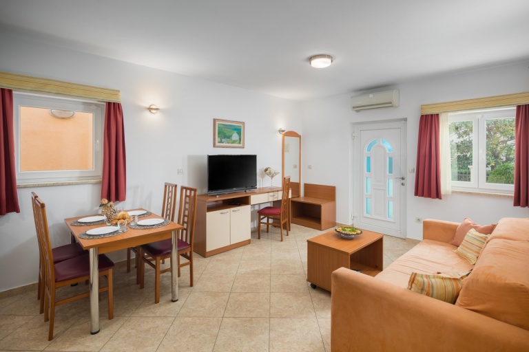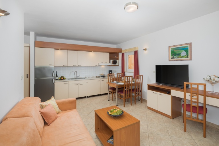 Smješten je u kompleksu apartmana , prostraniji je, ima kupaonu s masažnim tušem i prekrasnu terasu s tendom za sunce i pogledom na more.